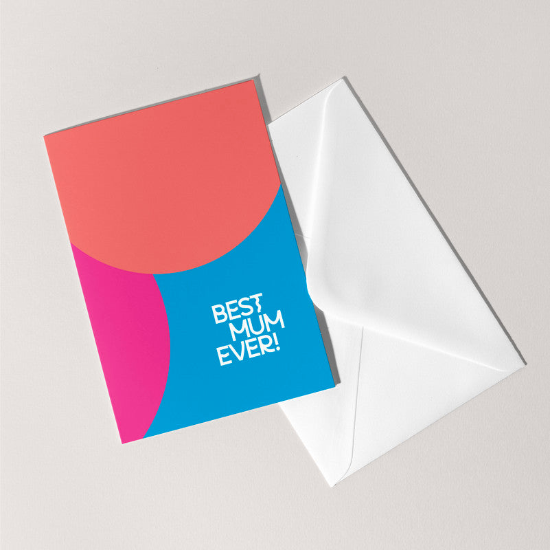 The geometric patterns bring a modern flair to the card, making it stand out with its striking visual appeal. The words "Best Mum Ever" are prominently displayed, delivering a warm and loving message that highlights just how special and appreciated your mum truly is.