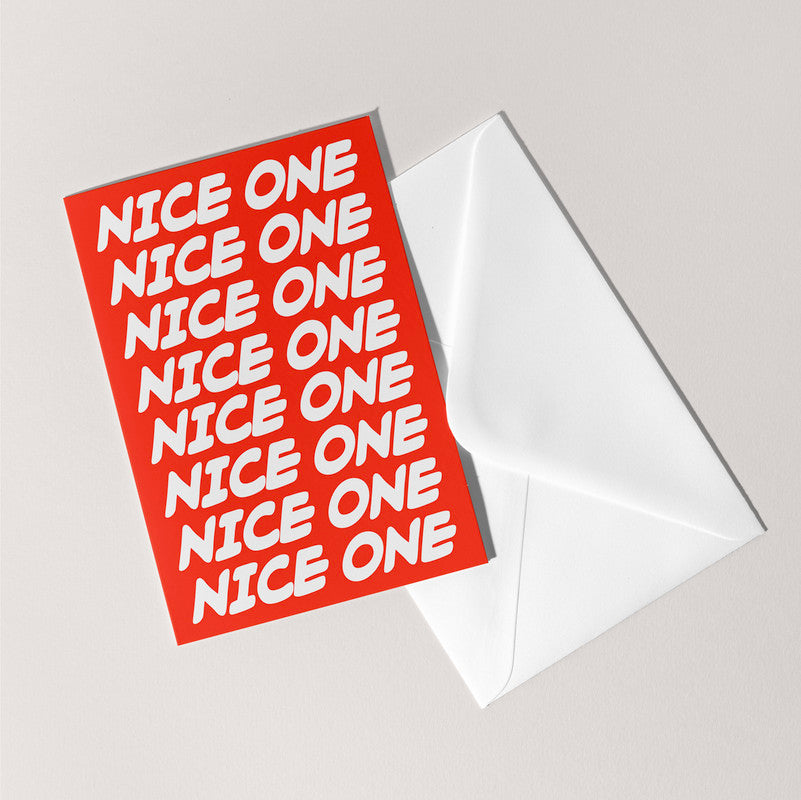 Send your kudos with flair and let your recipient know they've truly nailed it with this bold and uplifting "NICE ONE" card.