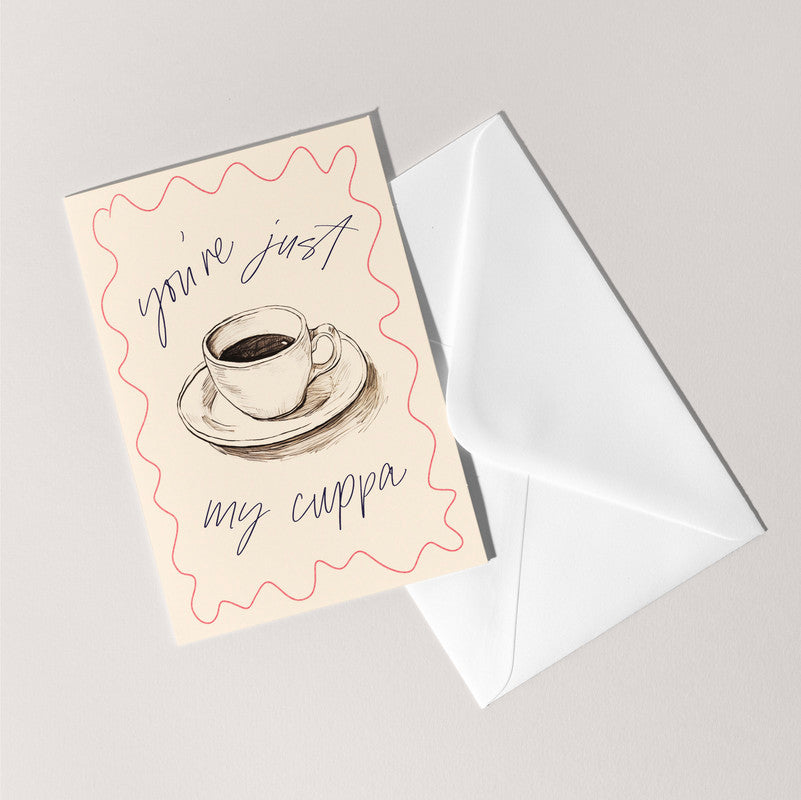 Perfect for any occasion, or just because, this card is a beautiful way to show your appreciation and affection. Make someone's day a little brighter with our "You're Just My Cuppa" greeting card.